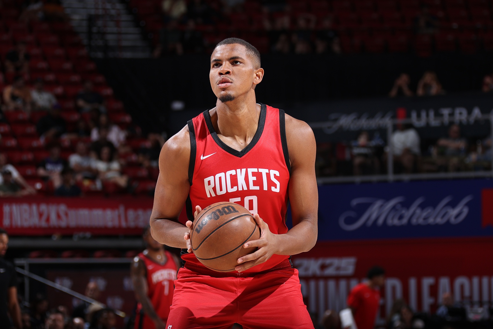 2024-25赛季数据:12.8分2.5助攻6.8篮板0.8抢断0.5盖帽,49.2%投篮命中率,37.2%三分命中率